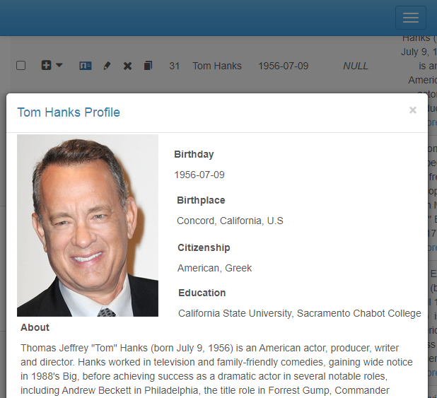 To provide the View form with such title as "Tom Hanks Profile", "Bruce Willis Profile", and so on, place the following code in the event body: