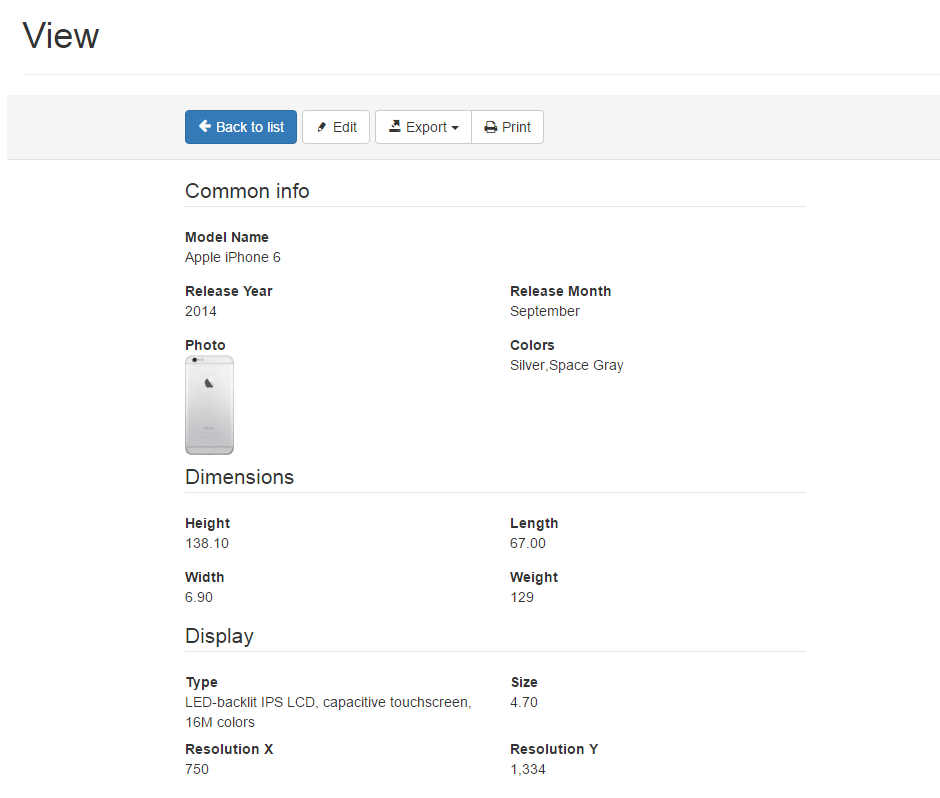 You can group related input controls in a form as well as manage the location of the controls within the groups. Both horizontal and vertical forms are supported, as well as editing modes (separate page, modal window, and inline editing).