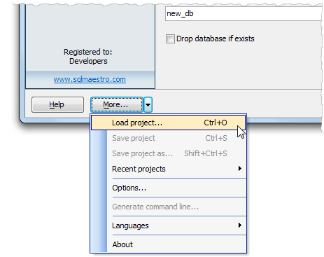 To restore previously saved settings from a project, click More > Load Project at the first wizard step. Recently used projects are available from the More > Recent Projects popup menu.