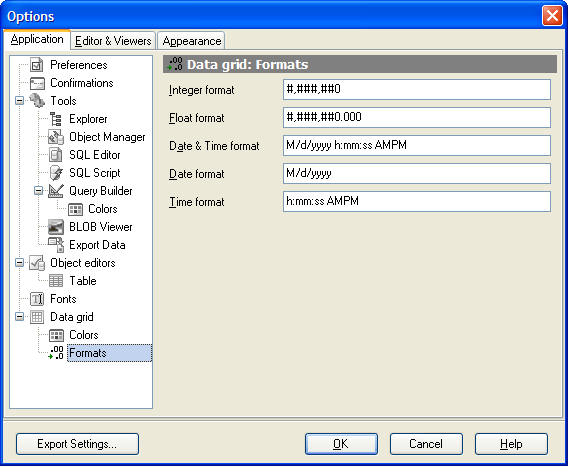 This window allows you to customize formats applied to data in grid. Edit the format masks to adjust the result format in the way you need.