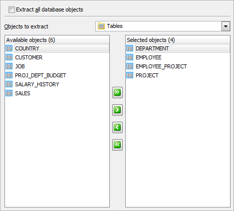 Select the database object to be extracted or check the Extract all database objects option to extract all objects from the database.