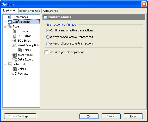 Select whether you will be prompted to commit or rollback active transaction or Code Factory for MySQL will commit or rollback transactions without asking.