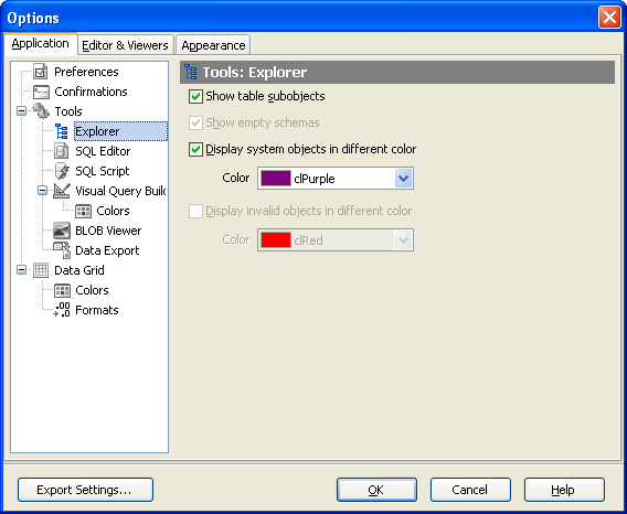 Shows/hides table subobjects (fields and indexes) in the explorer tree.