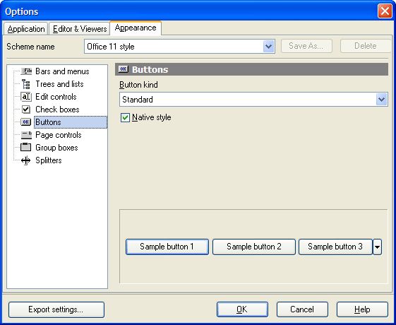 Use the Buttons item to customize Code Factory for MySQL buttons.