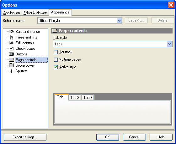 The Page controls item allows you to customize the style of all Code Factory for MySQL page controls.