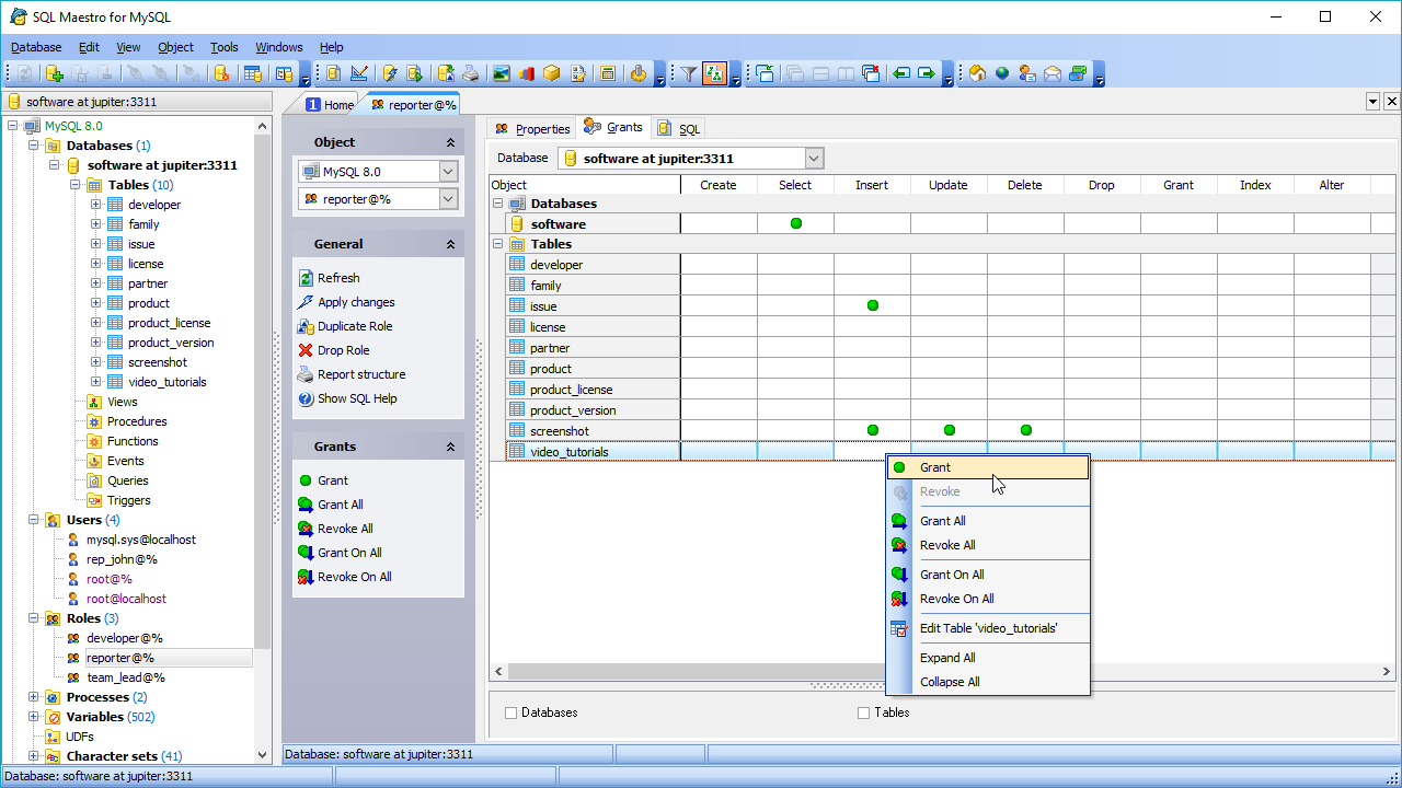 MySQL security system is easy and clear in SQL Maestro for MySQL