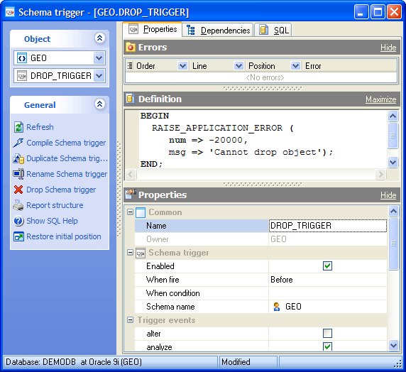 Schema Triggers Editor