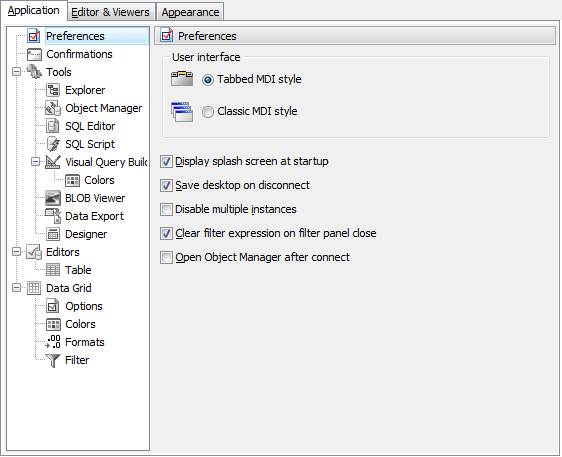 Saves all the database windows and their positions on disconnecting from the database.