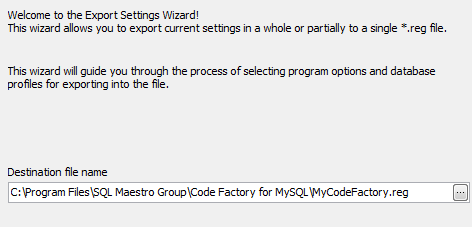 Specify a *.reg file to extract Oracle Maestro setting to.
