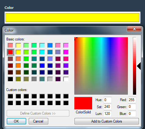 Use this control to edit values of columns storing HTML color codes with a native-browser Color Picker (it is assumed that a string data type is used for storing such values in the database).