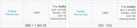 The code below is used in our online demo on the 'Teams' page to display the year of foundation of the oldest team on the page in more convenient form.